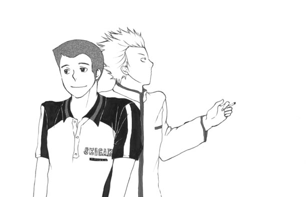 元の絵を切って小さくするとき、亜久津の持っているタバコを何とか残そうと苦心したのですが、何だかあまり意味がなかったようでガックリです。タバコと手に見えないよ。右下隅にちょこっと出ているのがそうです。